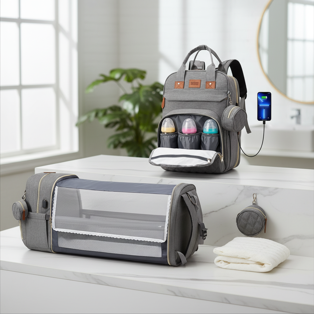 🍼 Sac à Dos à Langer 3-en-1 avec Lit Bébé Intégré – Le Tout-en-Un des Parents Modernes ✨